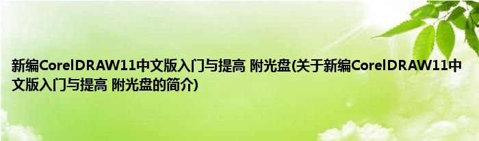 大家好,新编CorelDRAW11中文版入门与提高 附光盘,关于新编CorelDRAW11中文版入门与提高 附光盘的简介很多人还不知道,现在让我们一起来看看吧!