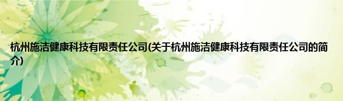 本文关于杭州施洁健康科技有限责任公司的简介就讲解完毕,希望对大家有所帮助。