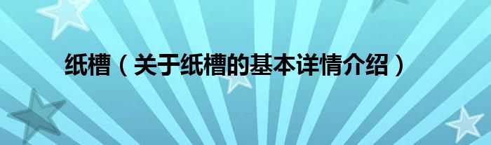 本文关于纸槽的基本详情介绍就讲解完毕,希望对大家有所帮助。