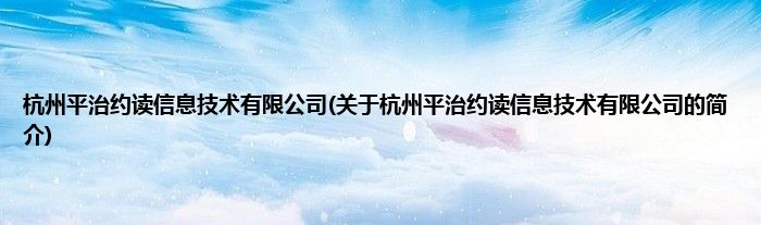 本文关于杭州平治约读信息技术有限公司的简介就讲解完毕,希望对大家有所帮助。