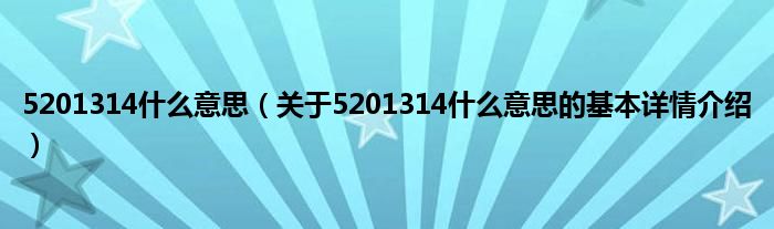 本文关于5201314什么意思的基本详情介绍就讲解完毕,希望对大家有所帮助。