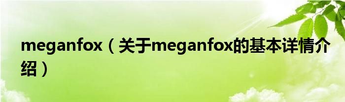 本文关于meganfox的基本详情介绍就讲解完毕,希望对大家有所帮助。