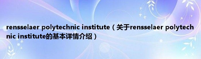 本文关于rensselaer polytechnic institute的基本详情介绍就讲解完毕,希望对大家有所帮助。