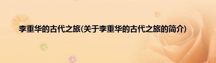 本文关于李重华的古代之旅的简介就讲解完毕,希望对大家有所帮助。