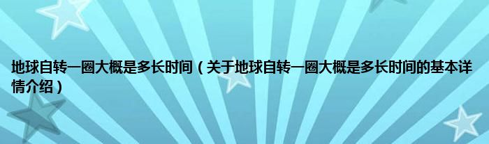 本文关于地球自转一圈大概是多长时间的基本详情介绍就讲解完毕,希望对大家有所帮助。