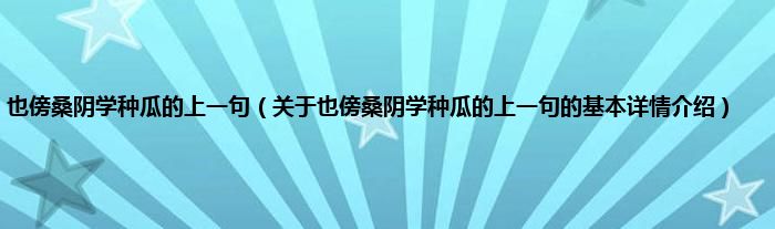 也傍桑阴学种瓜的上一句(关于也傍桑阴学种瓜的上一句的基本详情介绍)