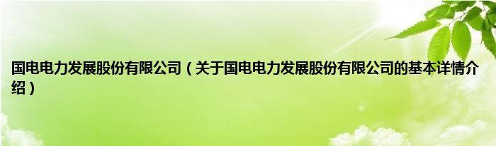 本文关于国电电力发展股份有限公司的基本详情介绍就讲解完毕,希望对大家有所帮助。