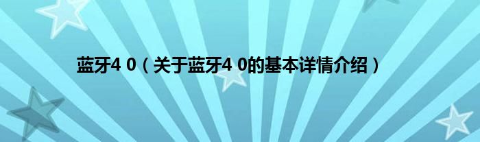 本文关于蓝牙4 0的基本详情介绍就讲解完毕,希望对大家有所帮助。