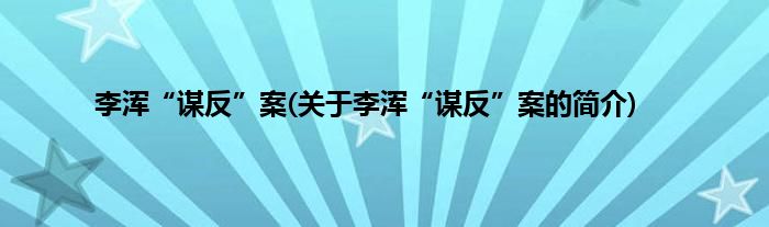 大家好,李浑“谋反”案,关于李浑“谋反”案的简介很多人还不知道,现在让我们一起来看看吧!
