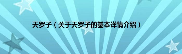本文关于天罗子的基本详情介绍就讲解完毕,希望对大家有所帮助。