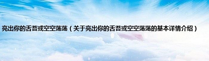大家好我是小蝌蚪,亮出你的舌苔或空空荡荡,关于亮出你的舌苔或空空荡荡的基本详情介绍很多人还不知道,那么现在让我们一起来看看吧!