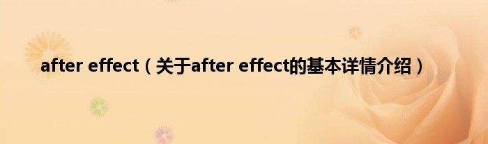 本文关于after effect的基本详情介绍就讲解完毕,希望对大家有所帮助。