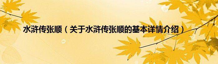 本文关于水浒传张顺的基本详情介绍就讲解完毕,希望对大家有所帮助。