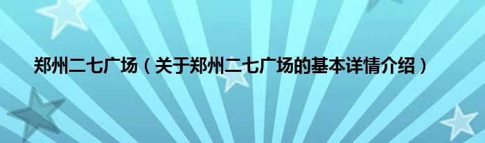 本文关于郑州二七广场的基本详情介绍就讲解完毕,希望对大家有所帮助。