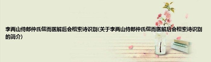 本文关于李两山侍郎仲氏儒而医解后会稽索诗识别的简介就讲解完毕,希望对大家有所帮助。