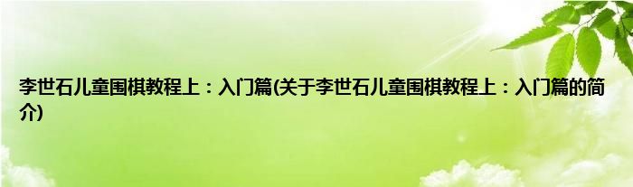 本文关于李世石儿童围棋教程上:入门篇的简介就讲解完毕,希望对大家有所帮助。