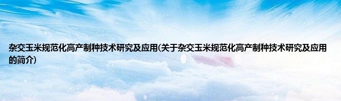 大家好,杂交玉米规范化高产制种技术研究及应用,关于杂交玉米规范化高产制种技术研究及应用的简介很多人还不知道,现在让我们一起来看看吧!
