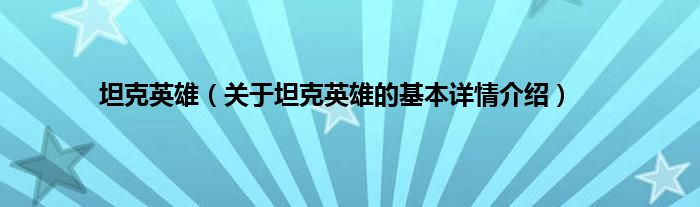 本文关于坦克英雄的基本详情介绍就讲解完毕,希望对大家有所帮助。