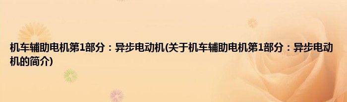 大家好,机车辅助电机第1部分:异步电动机,关于机车辅助电机第1部分:异步电动机的简介很多人还不知道,现在让我们一起来看看吧!