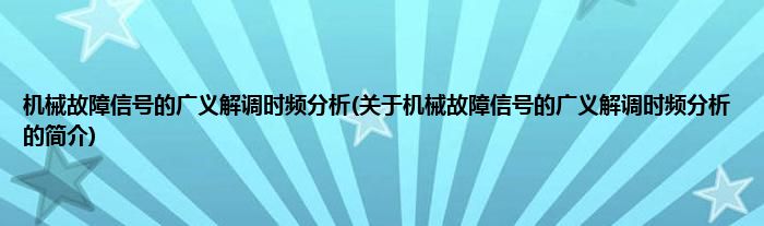 本文关于机械故障信号的广义解调时频分析的简介就讲解完毕,希望对大家有所帮助。