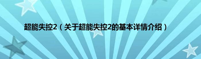 本文关于超能失控2的基本详情介绍就讲解完毕,希望对大家有所帮助。