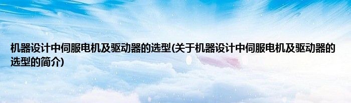 大家好,机器设计中伺服电机及驱动器的选型,关于机器设计中伺服电机及驱动器的选型的简介很多人还不知道,现在让我们一起来看看吧!