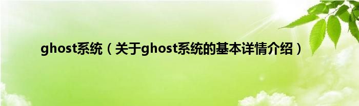 本文关于ghost系统的基本详情介绍就讲解完毕,希望对大家有所帮助。