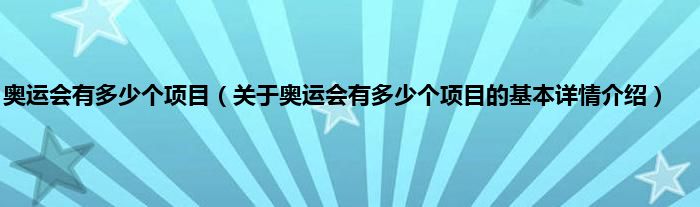 本文关于奥运会有多少个项目的基本详情介绍就讲解完毕,希望对大家有所帮助。