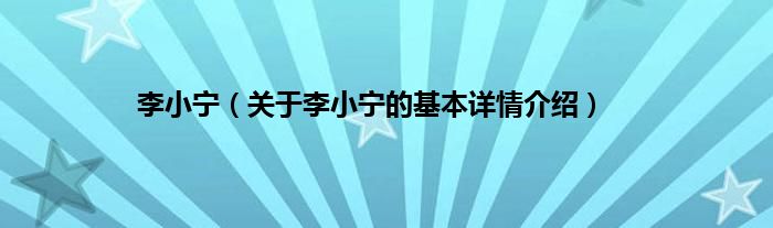 本文关于李小宁的基本详情介绍就讲解完毕,希望对大家有所帮助。