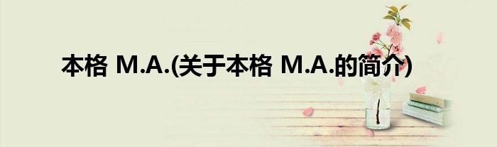 本文关于本格,M.A.的简介就讲解完毕,希望对大家有所帮助。