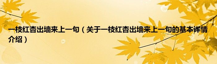 一枝红杏出墙来上一句(关于一枝红杏出墙来上一句的基本详情介绍)