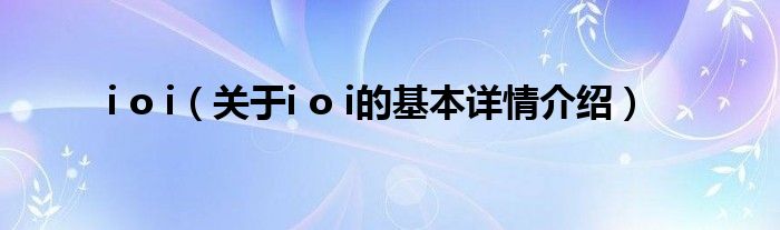 本文关于i o i的基本详情介绍就讲解完毕,希望对大家有所帮助。