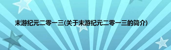 本文关于末游纪元二零一三的简介就讲解完毕,希望对大家有所帮助。