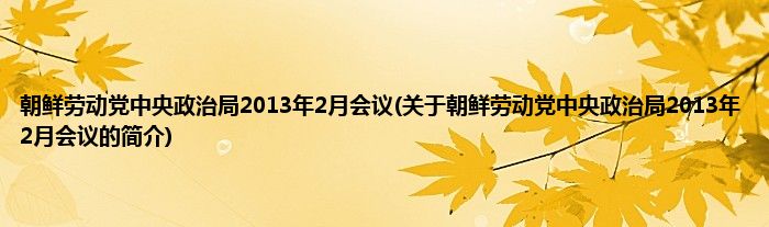 朝鲜劳动党中央政治局2013年2月会议(关于朝鲜劳动党中央政治局2013年2月会议的简介)