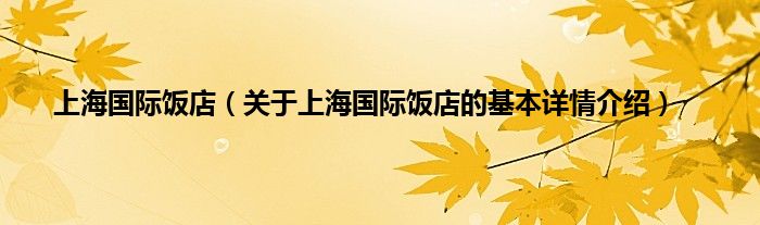 本文关于上海国际饭店的基本详情介绍就讲解完毕,希望对大家有所帮助。