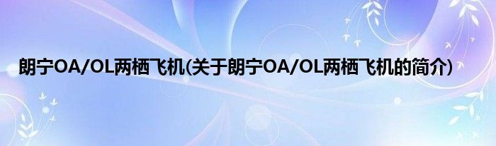 1、 朗宁OA/OL两栖飞机是由郎宁航空工程公司研发的两栖飞机。