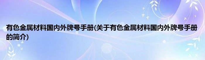 本文关于有色金属材料国内外牌号手册的简介就讲解完毕,希望对大家有所帮助。