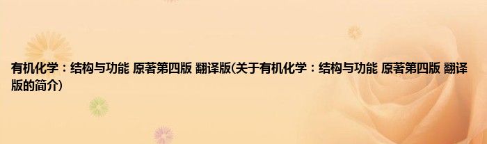 本文关于有机化学:结构与功能 原著第四版 翻译版的简介就讲解完毕,希望对大家有所帮助。