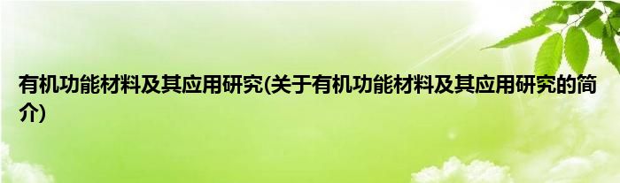 本文关于有机功能材料及其应用研究的简介就讲解完毕,希望对大家有所帮助。