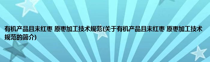 本文关于有机产品且末红枣 原枣加工技术规范的简介就讲解完毕,希望对大家有所帮助。