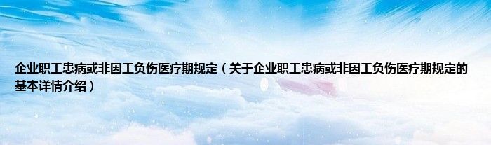 本文关于企业职工患病或非因工负伤医疗期规定的基本详情介绍就讲解完毕,希望对大家有所帮助。