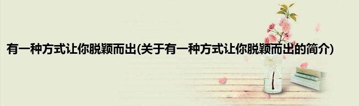 大家好,有一种方式让你脱颖而出,关于有一种方式让你脱颖而出的简介很多人还不知道,现在让我们一起来看看吧!
