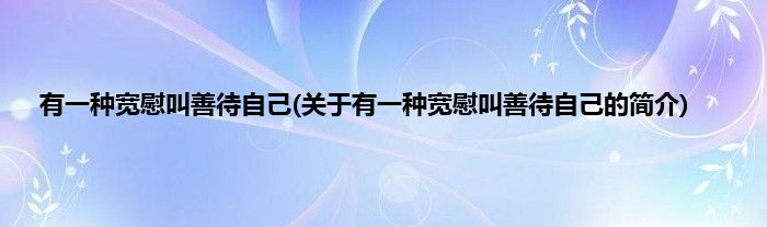本文关于有一种宽慰叫善待自己的简介就讲解完毕,希望对大家有所帮助。