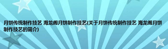 月饼传统制作技艺 海龙阁月饼制作技艺(关于月饼传统制作技艺 海龙阁月饼制作技艺的简介)
