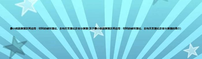 本文关于最小耗能原理及其应用:材料的破坏理论、本构关系理论及变分原理的简介就讲解完毕,希望对大家有所帮助。