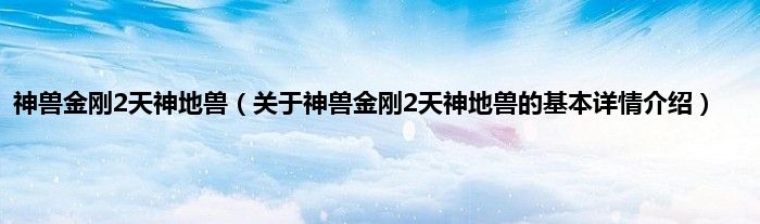本文关于神兽金刚2天神地兽的基本详情介绍就讲解完毕,希望对大家有所帮助。