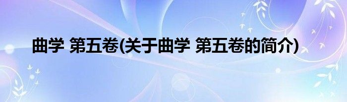 本文关于曲学 第五卷的简介就讲解完毕,希望对大家有所帮助。
