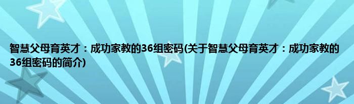 本文关于智慧父母育英才:成功家教的36组密码的简介就讲解完毕,希望对大家有所帮助。
