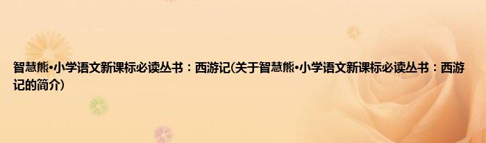大家好,智慧熊·小学语文新课标必读丛书:西游记,关于智慧熊·小学语文新课标必读丛书:西游记的简介很多人还不知道,现在让我们一起来看看吧!