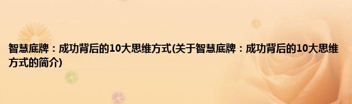 本文关于智慧底牌:成功背后的10大思维方式的简介就讲解完毕,希望对大家有所帮助。